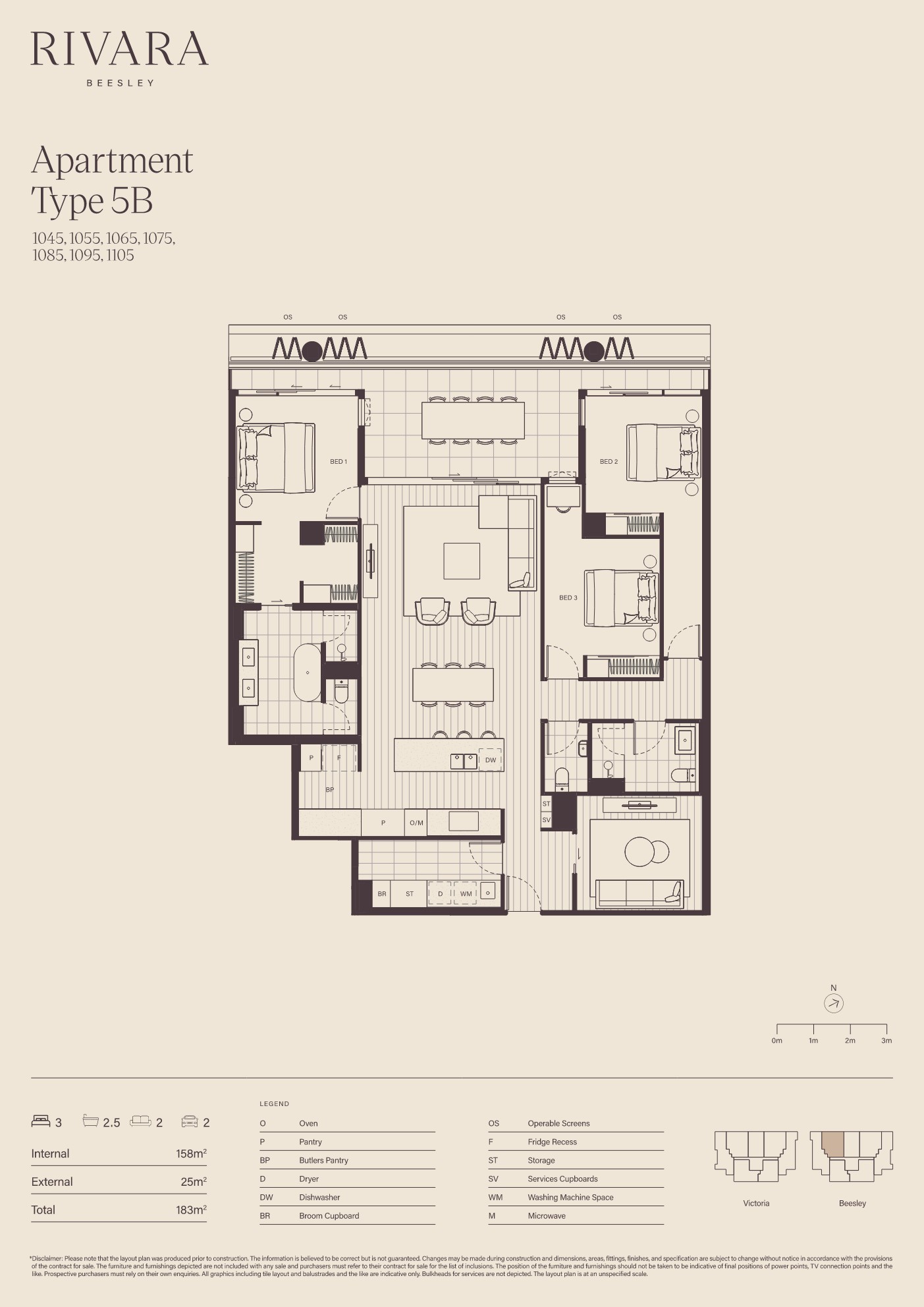 - 158m2 internal living space, plus 25m2 balcony for outdoor entertaining