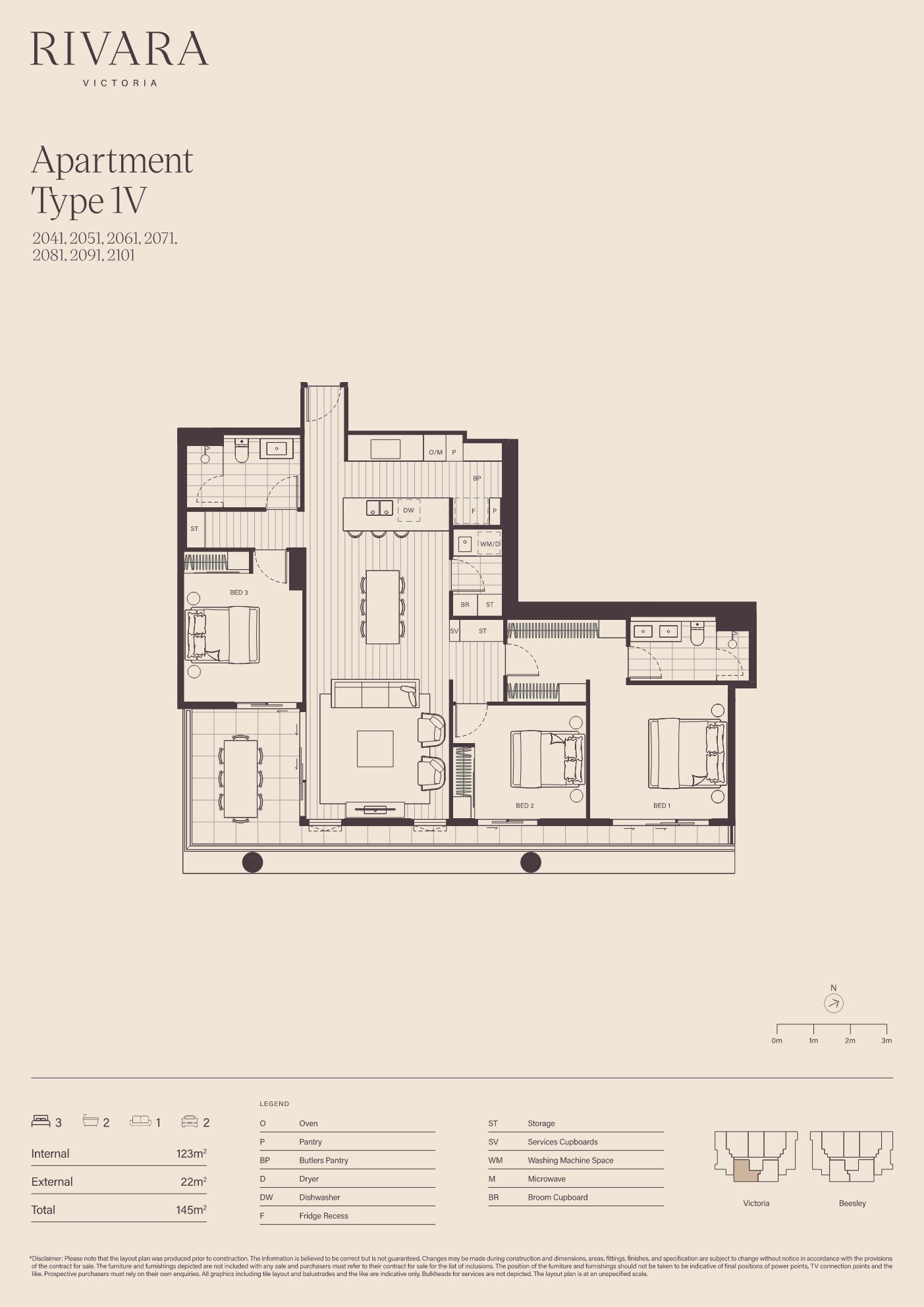 - 123m2 internal living space, plus 22m2 balcony for outdoor entertaining
