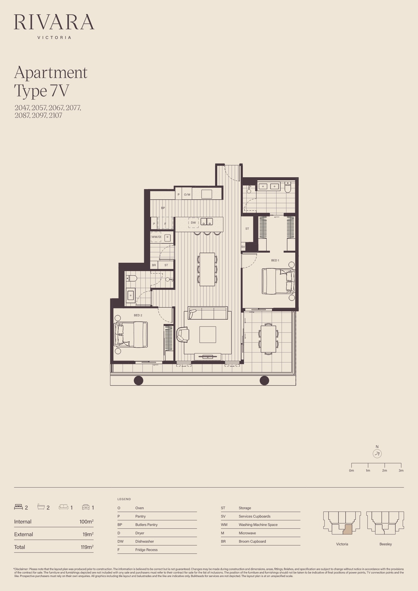 - 100m2 of internal living plus a 19m2 balcony for outdoor entertaining